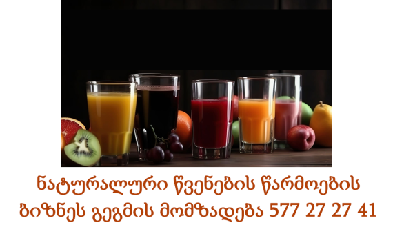 ნატურალური წვენების წარმოების ბიზნეს გეგმის მომზადება ð𥤠– სრული გზამკვლევი წარმატებული სტარტისთვის Updated march 20, 2026 1. სამიზნე ბაზრის ანალიზი ð ნატურალური წვენების ბიზნესი წარმატების მისაღწევად იწყება ბაზრის სრულყოფილი ანალიზით. უნდა იკითხოთ: ვინ არის თქვენი მომხმარებელი? რა ასაკისაა, რა ცხოვრების სტილი აქვს, რამდენად ჯანმრთელობის მიმართ მგრძნობიარეა? კლიენტის პროფილი: ასაკი: 18–45 წელი ინტერესები: ჯანსაღი კვება, სპორტი,