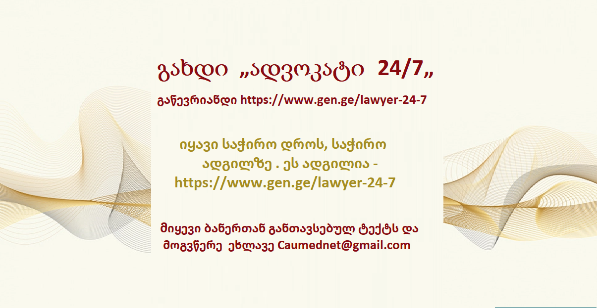 - ადვოკატი 24/7 — სწრაფი და დაცული სამართლებრივი დახმარება ნებისმიერ სიტუაციაში