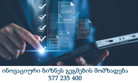 ინოვაციური ბიზნეს გეგმების მომზადება Updated march 22, 2026 ð კონსულტაცია და ბიზნეს გეგმების მომზადება: 577 235 400 ð შესავალი – რატომ არის ინოვაცია ბიზნესის მთავარი მამოძრავებელი? თანამედროვე მსოფლიოში წარმატება ეკუთვნის მათ, ვინც ქმნის ახალს. სწორედ ამიტომ ინოვაციური ბიზნეს გეგმების მომზადება გახდა ბიზნესის განვითარების მთავარი ინსტრუმენტი. ინოვაცია ნიშნავს: განსხვავებულ იდეას ახალი ღირებულების შექმნას კონკურენტებზე წინ გასვლას